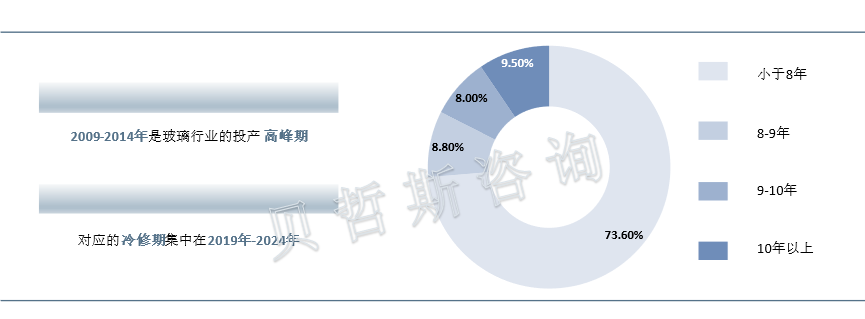 浮法玻璃表面光滑,厚度具有比较好的均匀性,相比较于其他玻璃具有更好的透明度,光学性能优异。可以用来制作镜子,汽车玻璃等,也可以用来制作电视背景墙、屏风等,还可以用于民用建筑中。因为浮法玻璃有很好的装饰性,且具有良好的透明性、明亮性、纯净性、以及室内的光线明亮等特点,浮法玻璃的应用范围十分广泛。2009-2014年是玻璃行业的投产高峰期,对应的冷修期集中在2019年-2024年,今年窑龄到期的窑炉陆续冷修,除了正常窑龄到期的产线将进入大规模冷修期外,今年下半年以来,窑龄未到期的超预期冷修持续增加,且预计这部分产线未来难以复产。