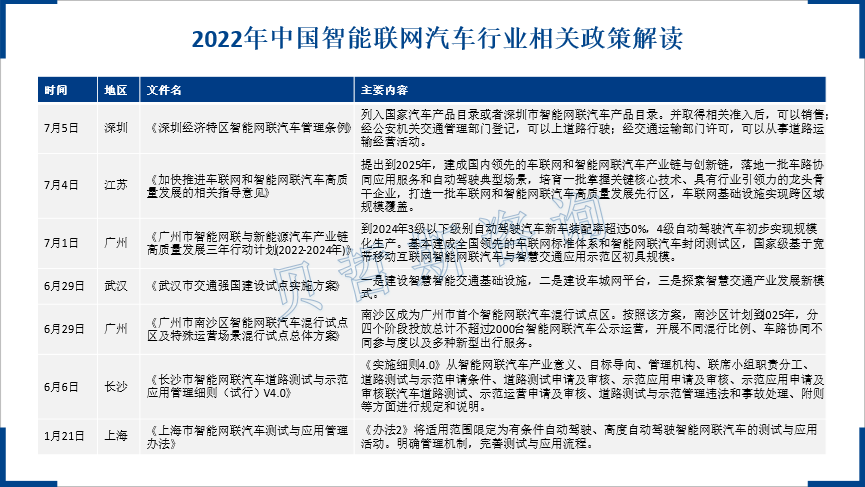 随着中国政策扶持力度的不断加大、相关技术的日趋成熟,中国智能网联汽车进入快速发展通道。2015-2021年随着5G的不断普及,中国为了推动智能网联汽车的发展,从中央政府到各级地方政府,相继制定了一系列政策法规和标准体系,打通汽车、通信、交通等各方面关联方,协同发展。