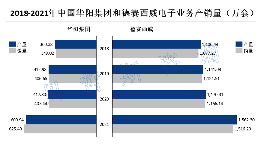 从重点企业的产销方面来看,近年来,华阳集团和德赛西威的产销量逐年稳定增长,2021年华阳集团的销售量为625.49万套,生产量为609.94万套,其销售量同比增长53.52%,其生产量同比增长45.99%;2021年德赛西威的销售量为1516.2万套,生产量为1562.30万套,其销售量同比增长30.02%,其生产量同比增长33.49%。