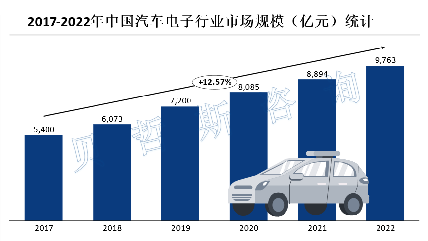 近年来,中国汽车电子行业在汽车中国汽车行业飞速发展的带动下发展迅速,行业的战略地位和市场规模都得到较大提升。2021年中国汽车电子市场规模达8894亿元,同比增长12%。未来,随着汽车高端新型汽车系统渗透率的提升和智能网联汽车行业整体的发展,中国汽车电子行业的规模有望将继续扩大。
