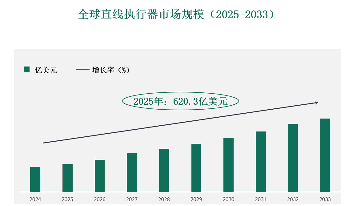 2025年全球直线执行器市场规模约为620.3亿美元,预计到2033年约为1206.5亿美元。