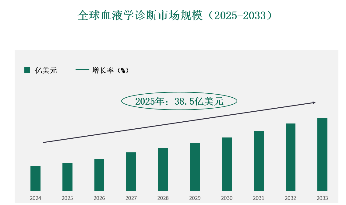 2025年血液学诊断市场规模为38.5亿美元,预计到2033年将达到68.6亿美元。