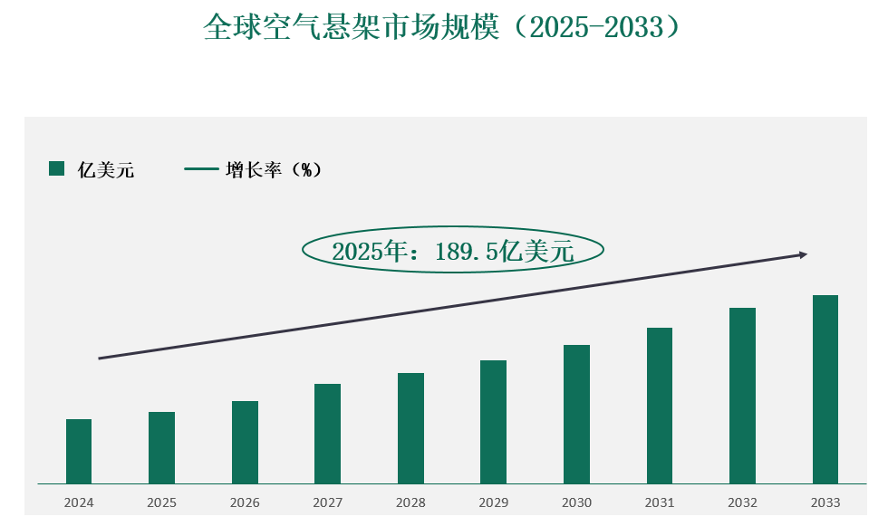 2025年全球空气悬架市场规模为189.5亿美元,预计2033年将增长到292.1亿美元。