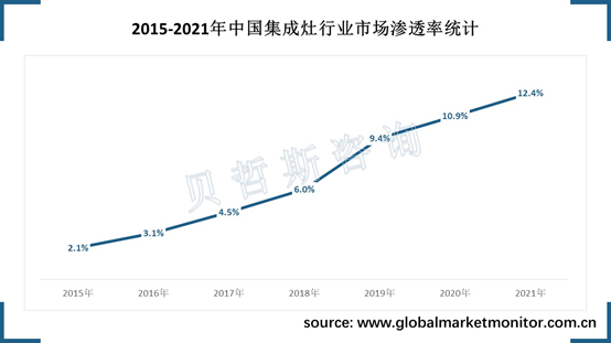 从2015年到2021年中国集成灶的市场渗透率从2.1%增长到了12.4%,仍处于较低水平。基于集成灶产品相对于传统烟灶产品的性能优势,以及功能集成、节省空间等优点,集成灶产品在享有厨电行业的自然增长之外,还会加快对传统吸油烟机和燃气灶的替代速度,其渗透率未来有望不断提高,市场规模将继续稳步增长。