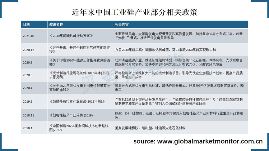 工业硅属于高耗能、高排放行业,近年来,在节能减排的大背景下,中国相关部门陆续出台相关政策,集中在限制工业硅行业新增产能和清退低效电炉,促进行业节能减排。据统计,2021年中国工业硅产能为499万吨,产量为321万吨,产量同比增长25.88%。