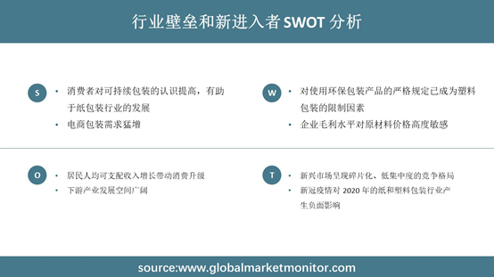 全球电子商务市场的增长正在推动全球包装需求,这是近年来的主要包装趋势之一。网上购物的便利性和互联网服务普及率的不断提高,尤其是在发展中国家,已经吸引了客户使用网上购物平台。随着网络销售的日益普及,对产品安全运输包装的需求也大大增加。这迫使在线零售商和电子商务公司使用不同类型的包装并实施新技术。 在线购物和按需配送服务的快速增长推动了纸和塑料包装的使用。2020年前,全球宏观经济发展速度将保持平稳增长,为纸塑包装行业发展提供良好的外部经济环境。随着经济增长和居民可支配收入增加,消费升级将是需求变化的主要方向。包装行业将在消费升级带动下呈现平稳增长态势,纸塑包装作为包装行业的重要组成部分将直接受益。