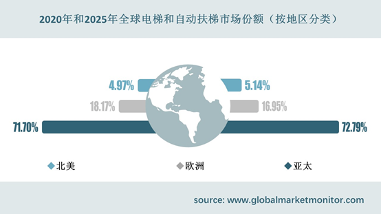 亚太地区消费者基础庞大,在电梯和自动扶梯占有绝对优势